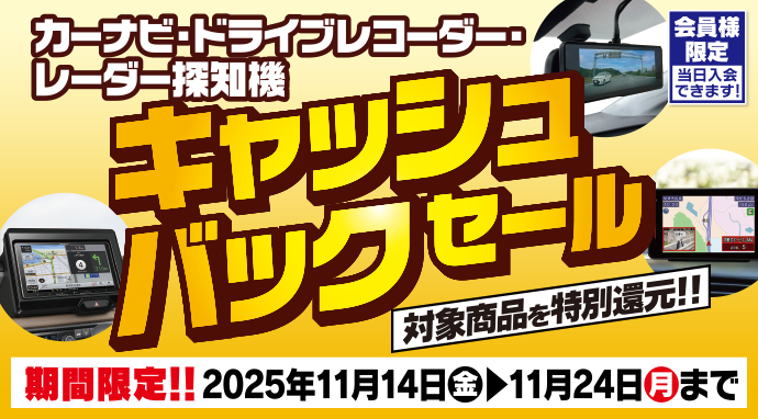カーナビ・ドライブレコーダー・レーダー探知機 キャッシュバックセール